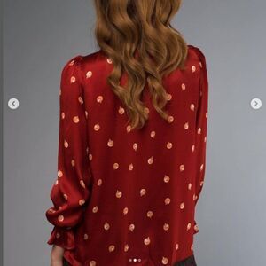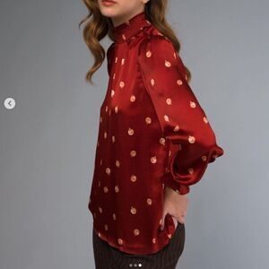 Tucker Stella Top Red Pearls in Silk Stretch Charmeuse Long Sleeves Mock Neck