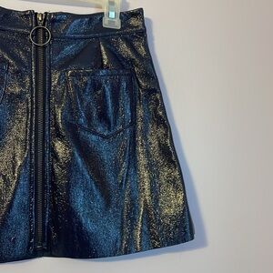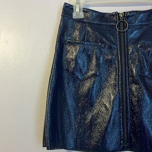 Tucker + Tate Faux Leather Vinyl Zip Front Mini Skirt Dark Blue size 10