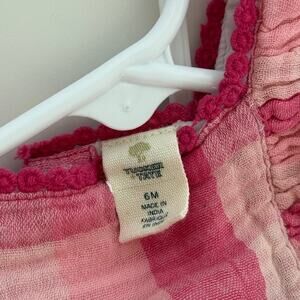 Sweet, soft, and perfect for warm-weather days — this Tucker + Tate Pink Plaid Ruffle Top & Bloomer Set in size 6M is adorable for everyday wear, photos, and playtime. The airy cotton blend keeps baby comfortable, while the ruffle sleeves and matching bloomers add the cutest touch.