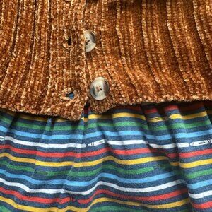 Tucker + Tate Rainbow Striped Dress Rust Chenille Cropped Sweater Outfit