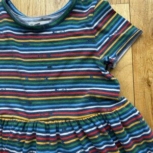Tucker + Tate cutest dress ever! It’s rainbow striped and has small little crayons throughout it. My daughter wore this for her first day of Kindergarten. Size 6