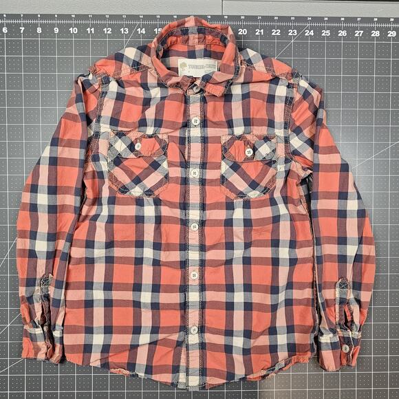 Tucker Tate Shirt Boys 7 Orange Plaid Long Sleeve Button Up Woven