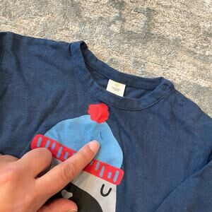 Tucker & Tate Winter Animals Outfit. Baby boy size 3 months. Two piece set includes long sleeve navy top with a walrus and cozy blue pull on sweats with narwhals, penguins, and more! Small crack in graphic (see photo), but otherwise great condition!