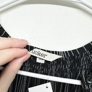 Tucker Women Black & White Striped Long Sleeve Deep V Blouse Size S/M