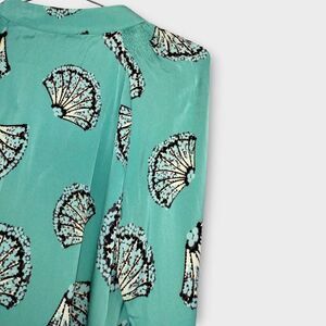 Tucker Womens Blouse Sz Large Aqua Silk Long Sleeves Coastalcore Beachy Cottagec