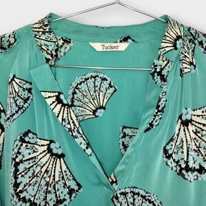 Tucker Womens Blouse Sz Aqua Silk Stretch Long Sleeves Coastalcore Beachy Cottagecore