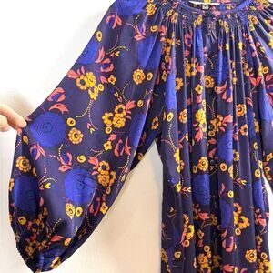 Tucker Women's Half Sleeve Silk Button Up Shirt Dress Purple Paisley Floral
