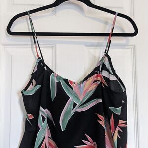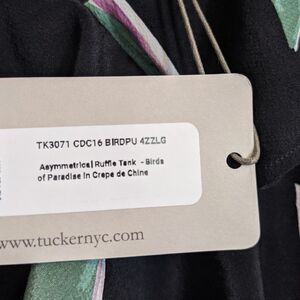 Tucker Assymetical Ruffle Tank Birds of Paradise in Crepe de Chine Silk Floral