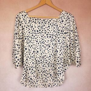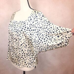 Tucker Cream And Black Polka Dot Dolman Sleeve Loose Boho Silk Blouse Size Med