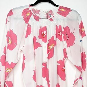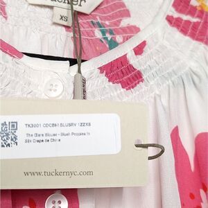 Tucker NYC Clara Classic Blouse Blush Poppies in Silk Crepe de Chine Top Floral