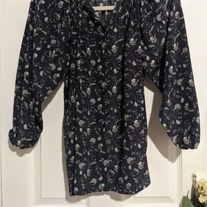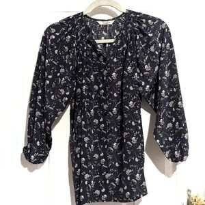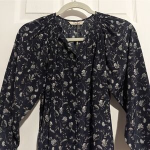 Tucker The Classic Blouse Navy Wallflower in Crepe de Chine Silk Floral Smock