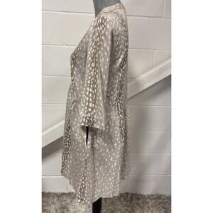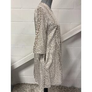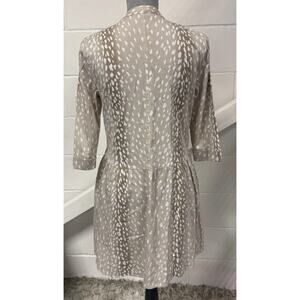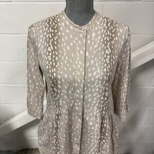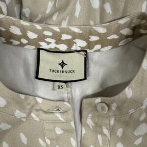 Tuckernuck Antelope Royal Shirt Dress XS White Tan Print 3/4 Sleeve Pockets