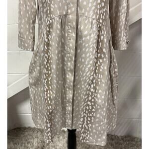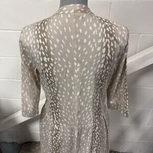 Step into timeless elegance with this Tuckernuck Antelope Royal Shirt Dress in a neutral light beige/tan and white antelope print. Perfect for work, weekend, or travel — this flattering piece features a classic button front, 3/4 sleeves, and the convenience of pockets.