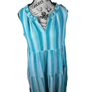 Tuckernuck Aquamarine Striped Salty Paloma Dress /Caftan Casual Vacation Size XS