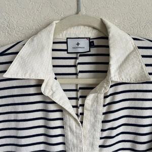 Tuckernuck Ashton Knit Polo Dress Ivory Navy Striped