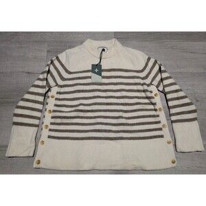 Tuckernuck Bar Harbor Ivory Tan Stripe Button Side Sweater Women's Sz Medium NWT
