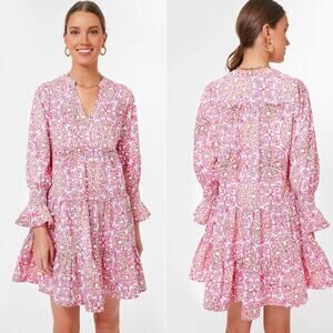 Tuckernuck Beach Block Print Kenzo Long Sleeve Dress Pink Orange M