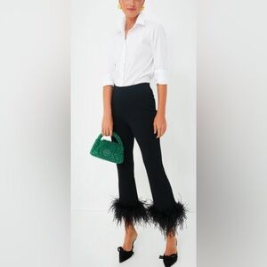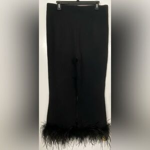 Chic black pants with feathered flare. Stylish and unique design. Perfect for a bold look.