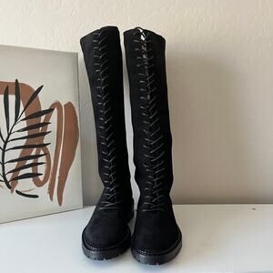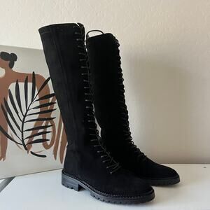Tuckernuck Black Kyle Lace Up Knee High Suede Leather Lug Boots Size 6 New