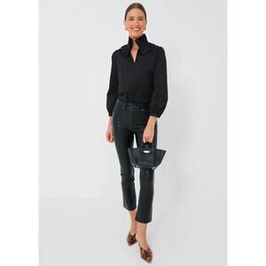 Tuckernuck Black Ruffled Mandarin Collar Blouse