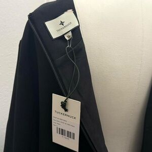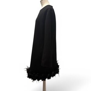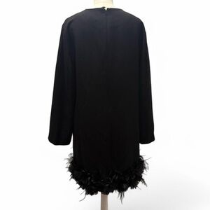 Reposhing since the dress is too big for me! This elegant black mini dress by Tuckernuck features a sophisticated sheath silhouette with long sleeves and a classic crew neck. The dress is perfect for a cocktail night out, offering a streamlined design with a playful feather trim at the hemline for added flair.
