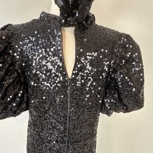 Tuckernuck Black Shimmer Sequin Perris Maxi Midi Dress Size XXL Puff Sleeve Bow