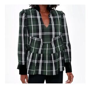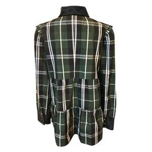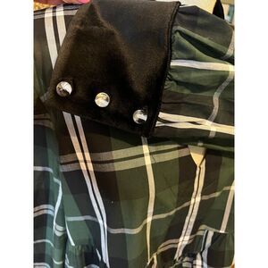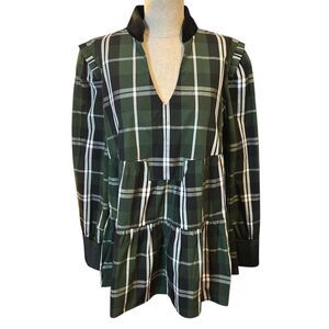 Tuckernuck Blouse Shirt XL Green Tartan Plaid Tiered Ruffle Velvet Extra Large
