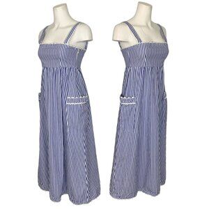 Tuckernuck Blue Stripe Georgia Dress XS Maxi Sleeveless Pockets Nautical Resort
