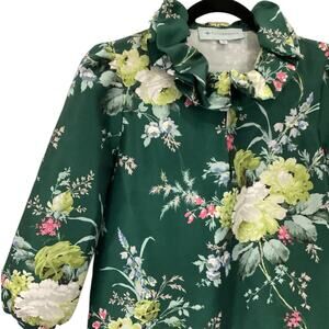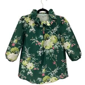 Tuckernuck Bouvier Blouse Green Floral Ruffle Collar Blouson Sleeves Size XS