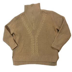Tuckernuck Camel Quarter Zip Estella Sweater Pullover 100% Wool Sz XL