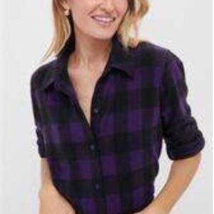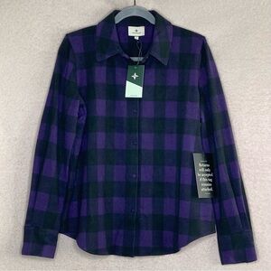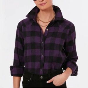 Tuckernuck Chandler Check Flannel Button Down Shirt-Purple/Black-Womens S-Casual