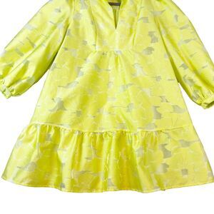 Tuckernuck Citron Fil Coupe Palmerston Dress Women's XXXL (3X) Neon Yellow Ruffle