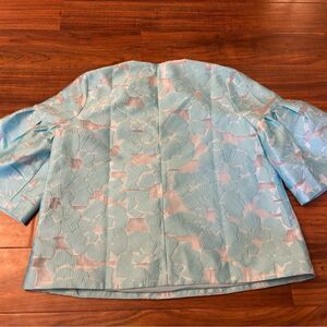 Tuckernuck Cyan Fil Coupe Harper Bell Sleeve Blouse NWT. Teal color. Floral. Short sleeve. Back zipper. Armpit to armpit 21 inches. Length 24 1/2 inches. 100% polyester. Lining 97% polyester, 3% spandex. Size medium. Brand new with tags.