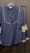 This is a cotton and linen blend material, features a v-neck line with 2 concealed buttons, and has long sleeves with a crocheted detail as a band around the arm.