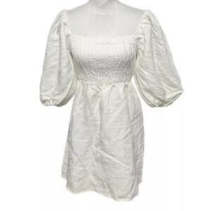 Tuckernuck Dress Puff Sleeve Linen Annie Smocked Mini White Women's Size Large
