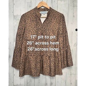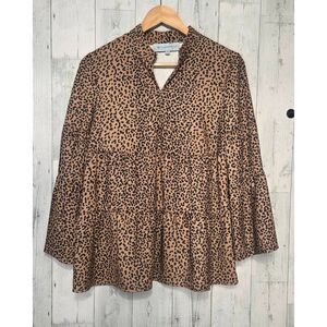 Tuckernuck Edith Oversized Tiered Bell Sleeve Leopard Print Tunic Top Sz. XS