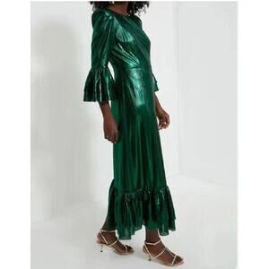 Tuckernuck Emerald Green Crinkle Lurex Lillith Dress Large