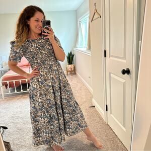 Tuckernuck En Saison Blue Brown Floral Maxi Dress Small