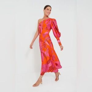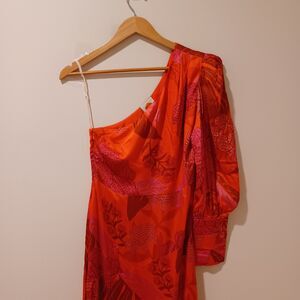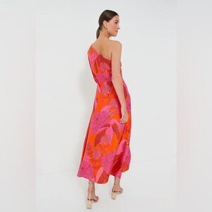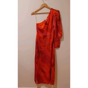 Tuckernuck Farm Rio Dewdrop Floral Red One Shoulder Midi Dress Size S Side Slit