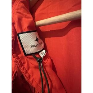 Tuckernuck Faye Red Guipure Lace Ruffle Tie Neck Top NWT Extra Small XS