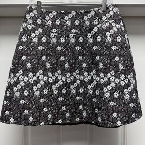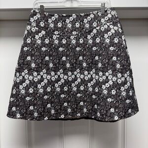 Keywords for Search: Tuckernuck skirt, floral mini skirt, A-line jacquard skirt, daisy print skirt, black and white floral skirt, women's mini skirt, stylish A-line skirt, versatile skirt, spring skirt, summer skirt.