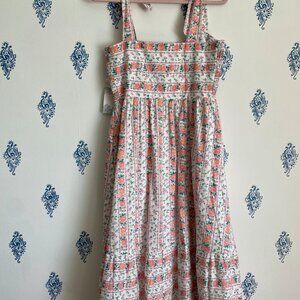 Charming floral midi dress. Features bow-tie straps. Perfect for casual outings.