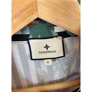 This is a Tuckernuck Flowering Trellis Chloe Midi Dress with a spread collar, short “wing” sleeves, and button down front. Buttons are fabric covered and add to the lady-like quality of the dress. The included belt is missing, and the dress has been priced accordingly. The attached belt loops could accommodate many different styles of belt or ribbon tie. Other than the missing belt, this dress is in Excellent Used Condition.