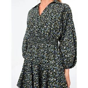 Hyacinth House by Tuckernuck Black Floral Belle Cotton Mini Dress size Small