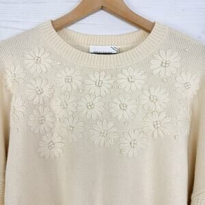 Tuckernuck Hyacinth House Francine Sweater Size XL Embroidered Flowers Cream