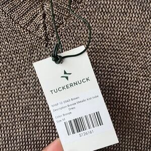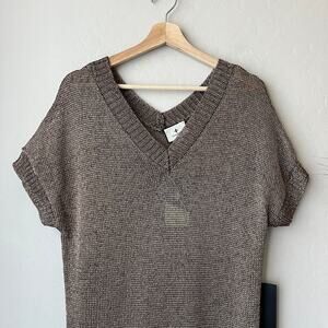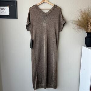 Tuckernuck Indie Metallic Bronze Knit Short Sleeve V-Neck Midi Dress Size M NWT