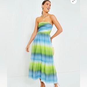 Tuckernuck Kaia Dress Chartreuse and Sky Blue Green Ombre Strapless Midi size XS