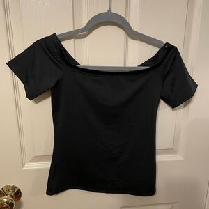 Black off shoulder top. XS. Good preowned condition. Approximate lay flat measurements 15 pit to pit and 19 shoulder (approx where shoulder would be) to hem.