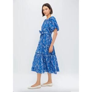 The Limoges Floral Mimi Maxi Dress is a midi that can carry you from day to night with ease. With flattering details such as short puffed sleeves, a self-tie waist belt, and a tiered skirt, this romantic silhouette is effortlessly elegant. Pair with ballet flats or heels for a chic look!