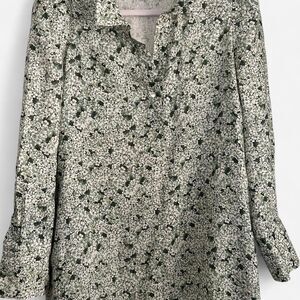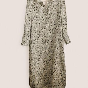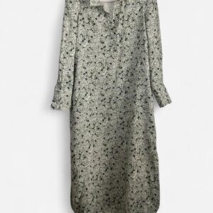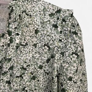 Timeless elegance meets modern cottagecore. This Tuckernuck linen midi dress features a green and cream hydrangea floral print, ruffled high neckline, and lightly padded puffed shoulders. Button-down front, side vents, and hidden pockets make it chic and functional. Perfect for spring, garden parties, or vacation looks.